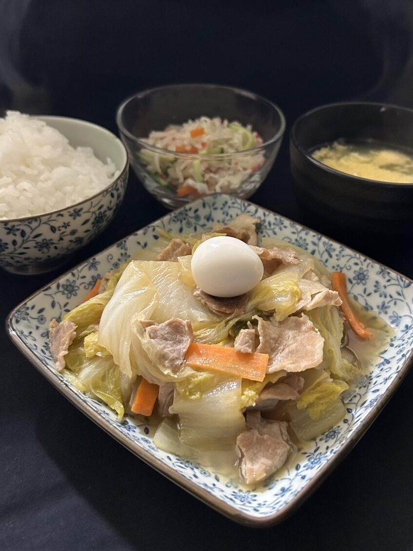 八宝菜・切干し大根とカニかまの酢の物・スープ